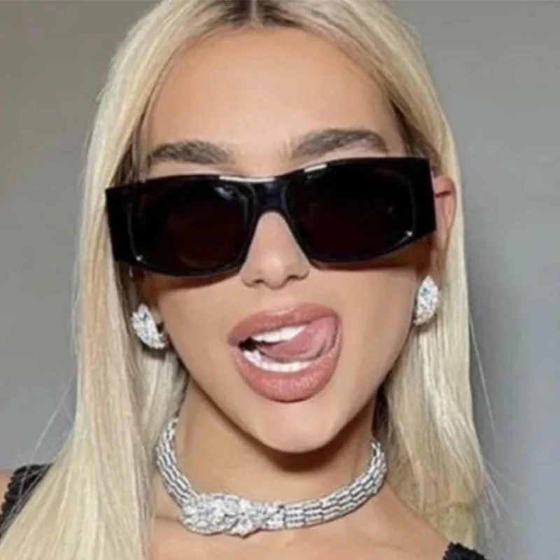 Square Women Sunglasses Vintage Brand Designer Classical Black Sun Glasses Men Luxury Oval Small Frame Wide Legs Glasses