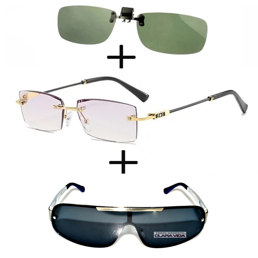 When I finally tried these new readers, I felt immediate relief. The difference in quality was night and day. These glasses are frameless and rimless, giving them a sharp, professional look. They also came with useful extras: the main reading glasses, a pair of alloy polarized sunglasses, and a separate sunglasses clip. It’s a complete package designed for real life.